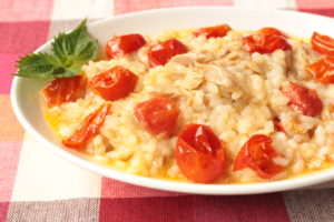 人気の本格ツナトマトリゾットのレシピ。生米からレンジで簡単作り方。