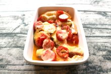 レンジで簡単日持ちする常備菜レシピ。鮭とトマトきのこのアヒージョ